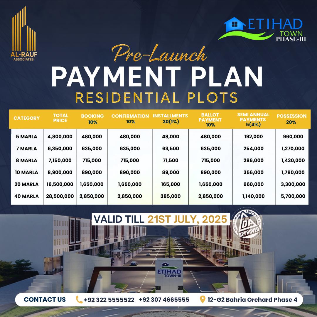 Lahore Society Etihad Town Phase 3, Lahore 1 week ago
