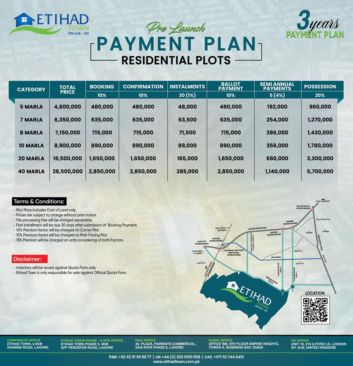 7 Marla Top Location Plots Available For Sale On Installment Plan In Etihad Town Phase 3